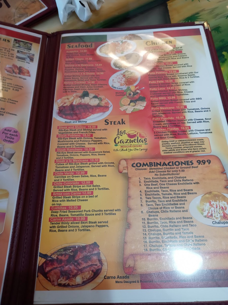 Highlighting their menu are the succulent fajitas and expertly crafted quesadillas, both of which receive consistent acclaim for their quality and taste. Guests also appreciate the extensive selection of refreshing margaritas, offering more than just sweetness. With a commitment to cleanliness and hospitality, Las Cazuelas is the ideal spot for a quick bite or a leisurely dinner with friends and family. Join the growing list of satisfied customers who are eager to return for more of this culinary delight!